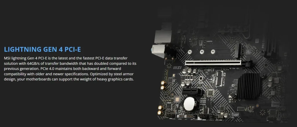| Expansion Slots | 1x PCIe x16 slot (From CPU) – Supports up to PCIe 4.0 x16 1x PCIe x1 slot (From B660 chipset) – Supports PCIe 3.0 x1 |